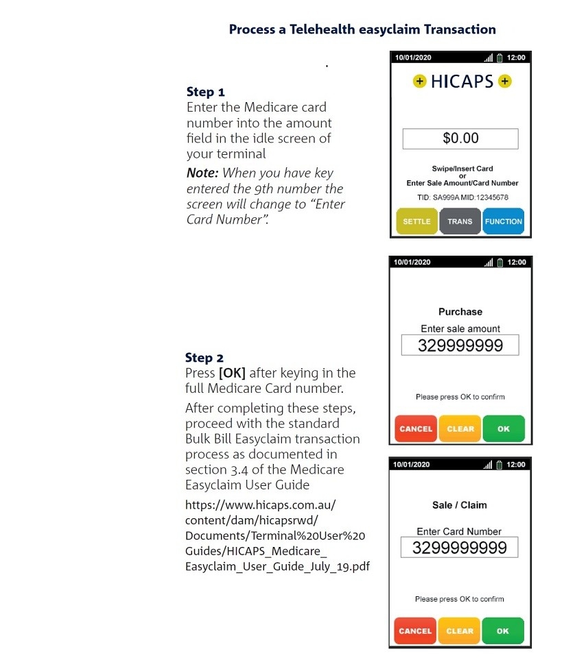 The Practitioner can then initiate the claim through the terminal by following the instructions below on how to key enter the card number.